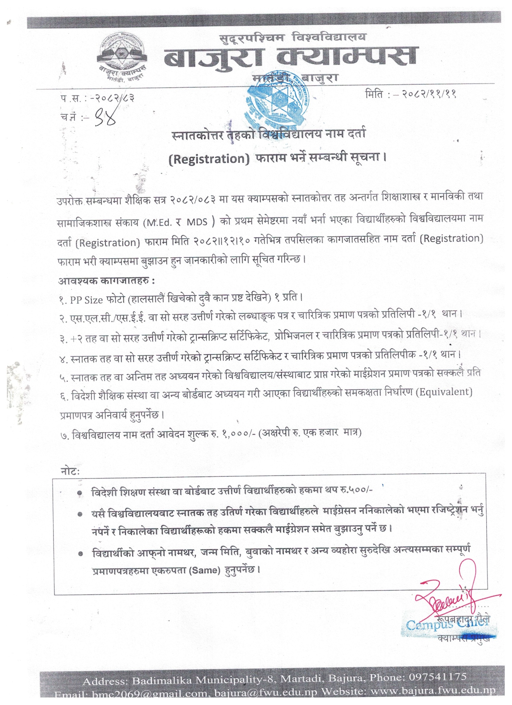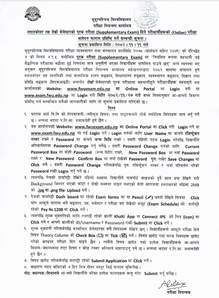 स्नातकोत्तर तह तेस्रो सेमेस्टरको पूरक परीक्षा (Supplementary Exam) दिने पर ...